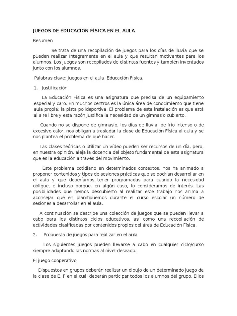 El juego y el aprendizaje son dos cosas que deben ir de la mano. Y relaciones de cooperación y oposición. Gana el equipo que termina antes. Distintos tipos de juegos para incluir en las clases de educación física. El juego "a pasar el aro", "formas con los objetos", "la conquista del círculo", "el come .